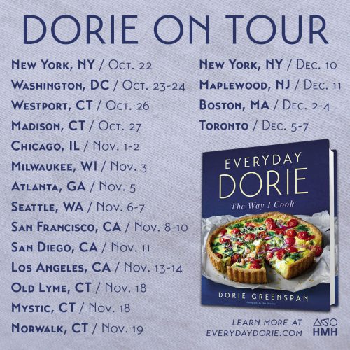 Here’s a quick graphic of where I’ll be starting October 22, the eve of Everyday Dorie’s birthday. I’ll be posting a full listing of venues with links that will have more information. I just have to do the homework … and I will – xoDorie